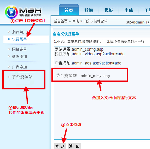如下图这样先添加采集快捷菜单